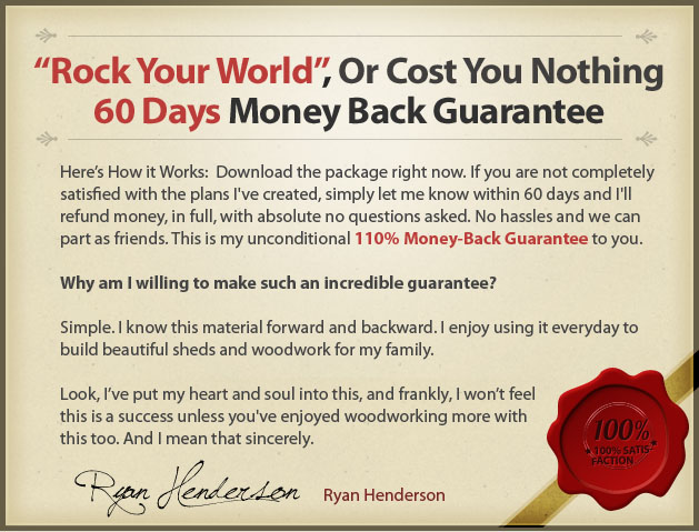 You have 60 full days to try Ryan's Shed Plans **ON ME** - risk-free.